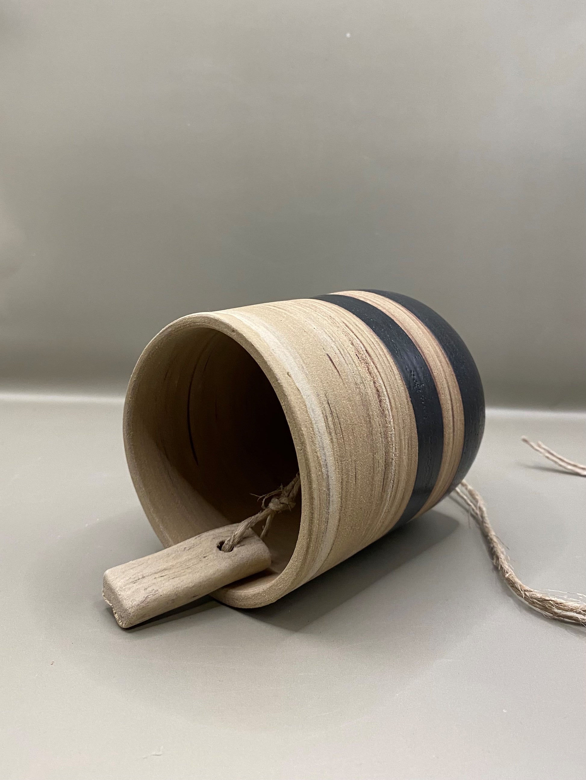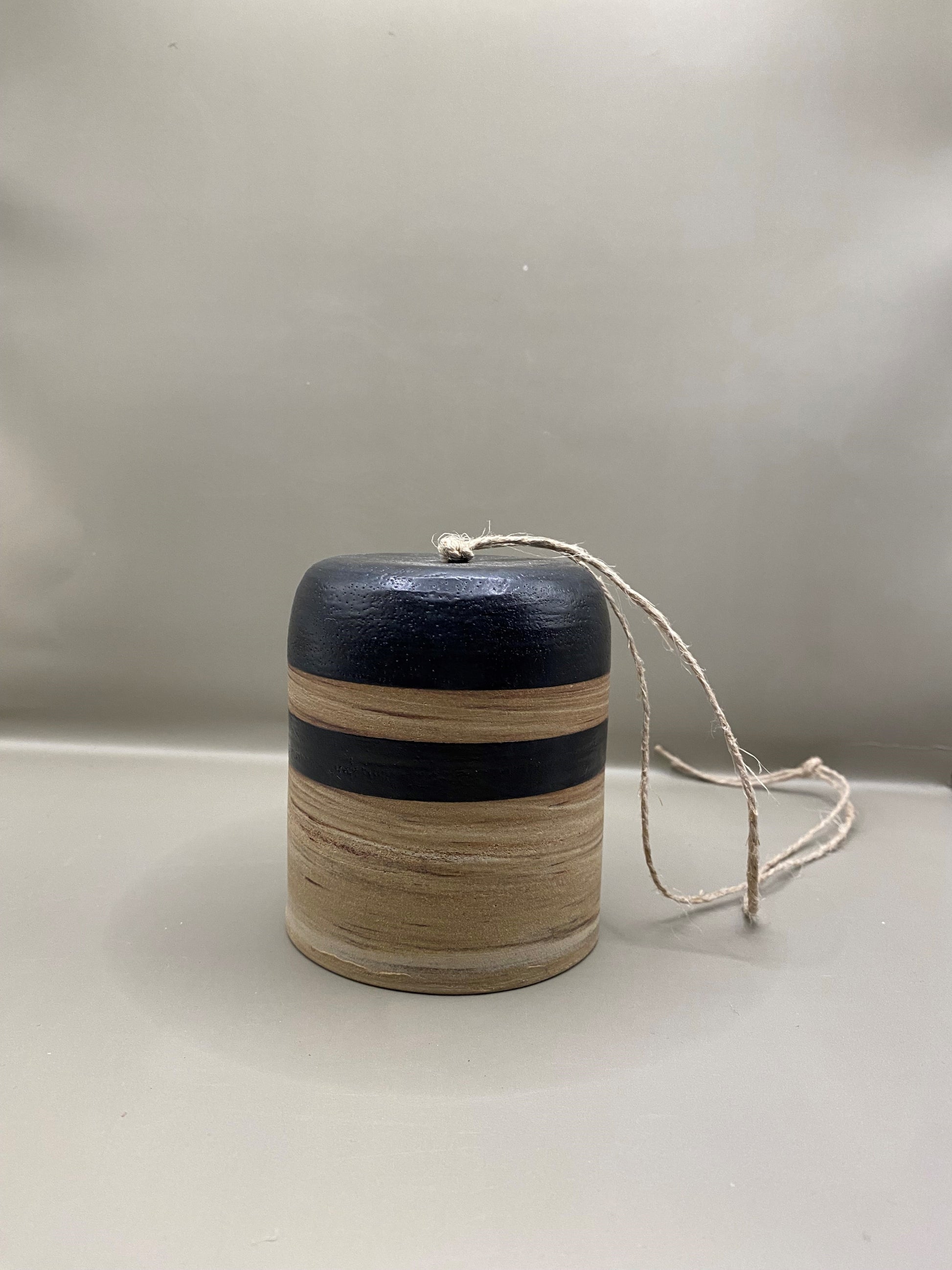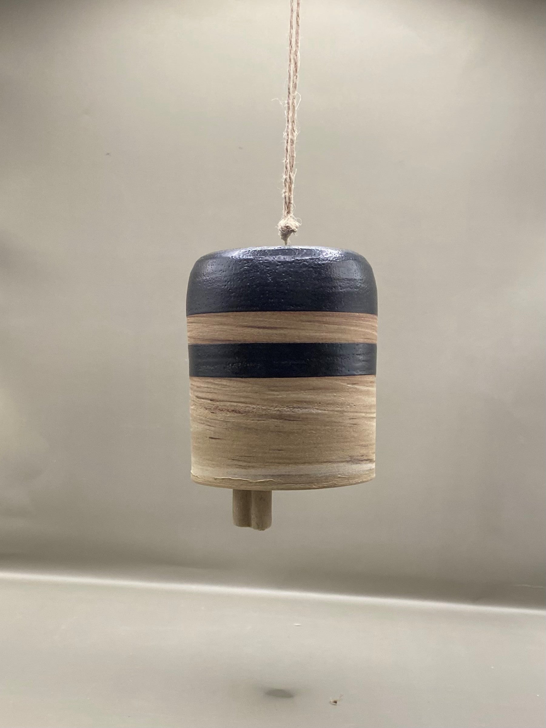פעמון קרמיקה - חימר לבן מעורב עם ברזל אדום, פסים שחורים גלזורה
