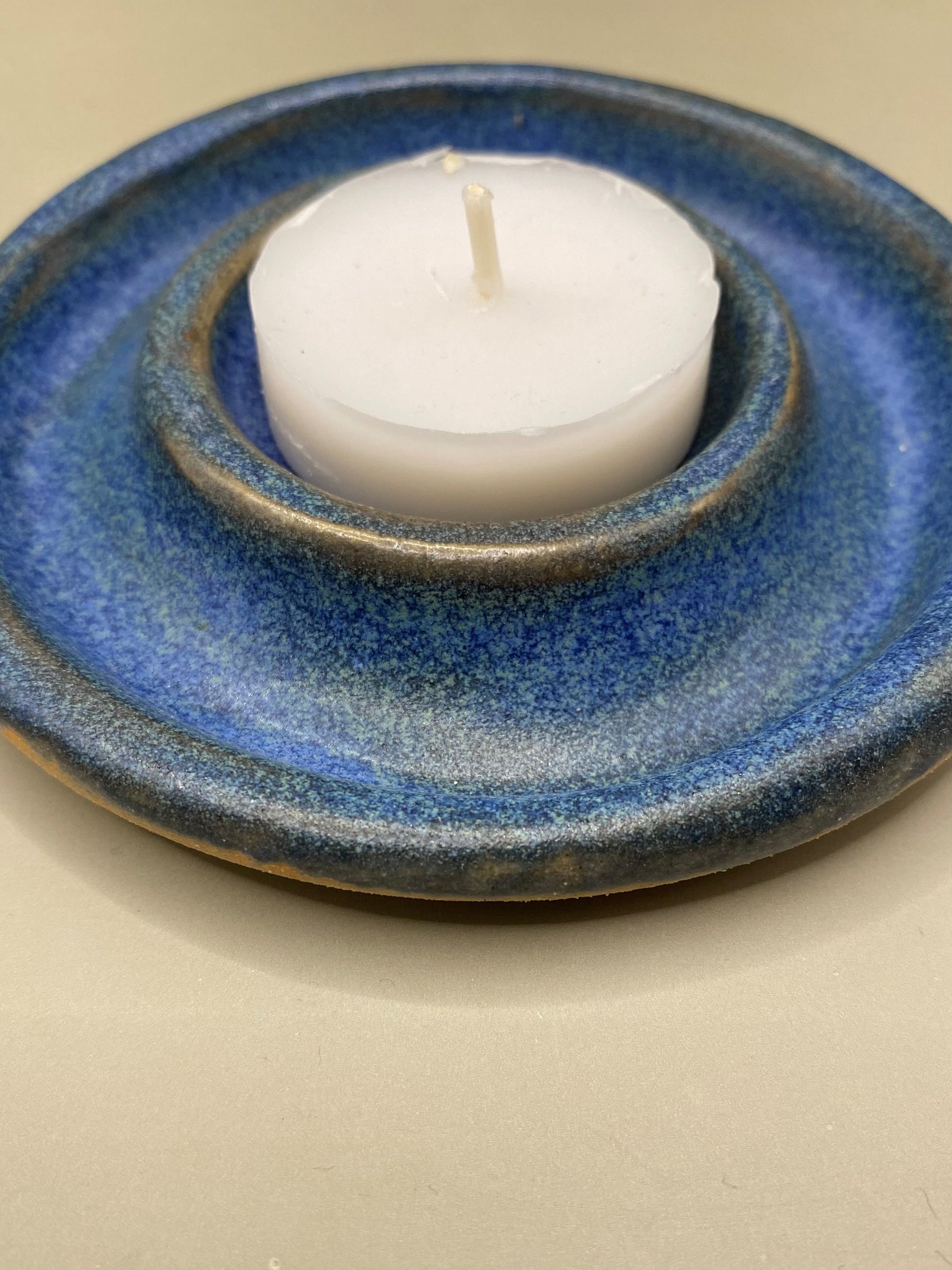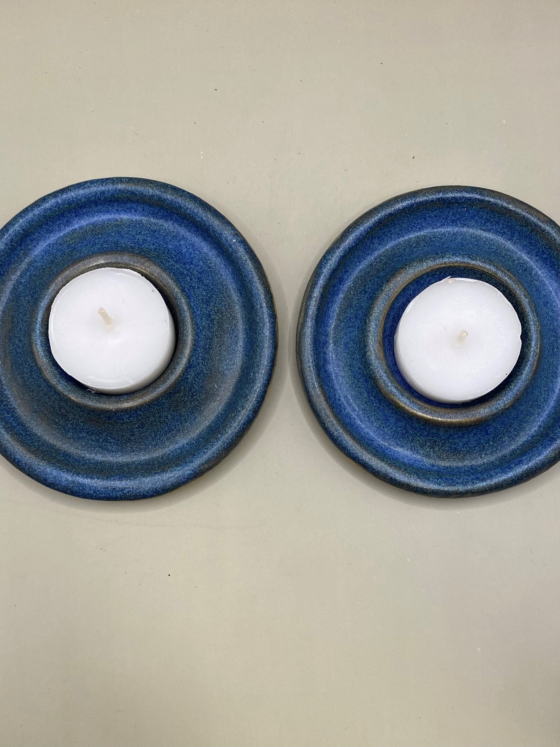 זוג פמוטים יחודיים מקרמיקה עבודת יד, העיצוב עגול ושטוח ומתאים לנרות שבת שטוחים