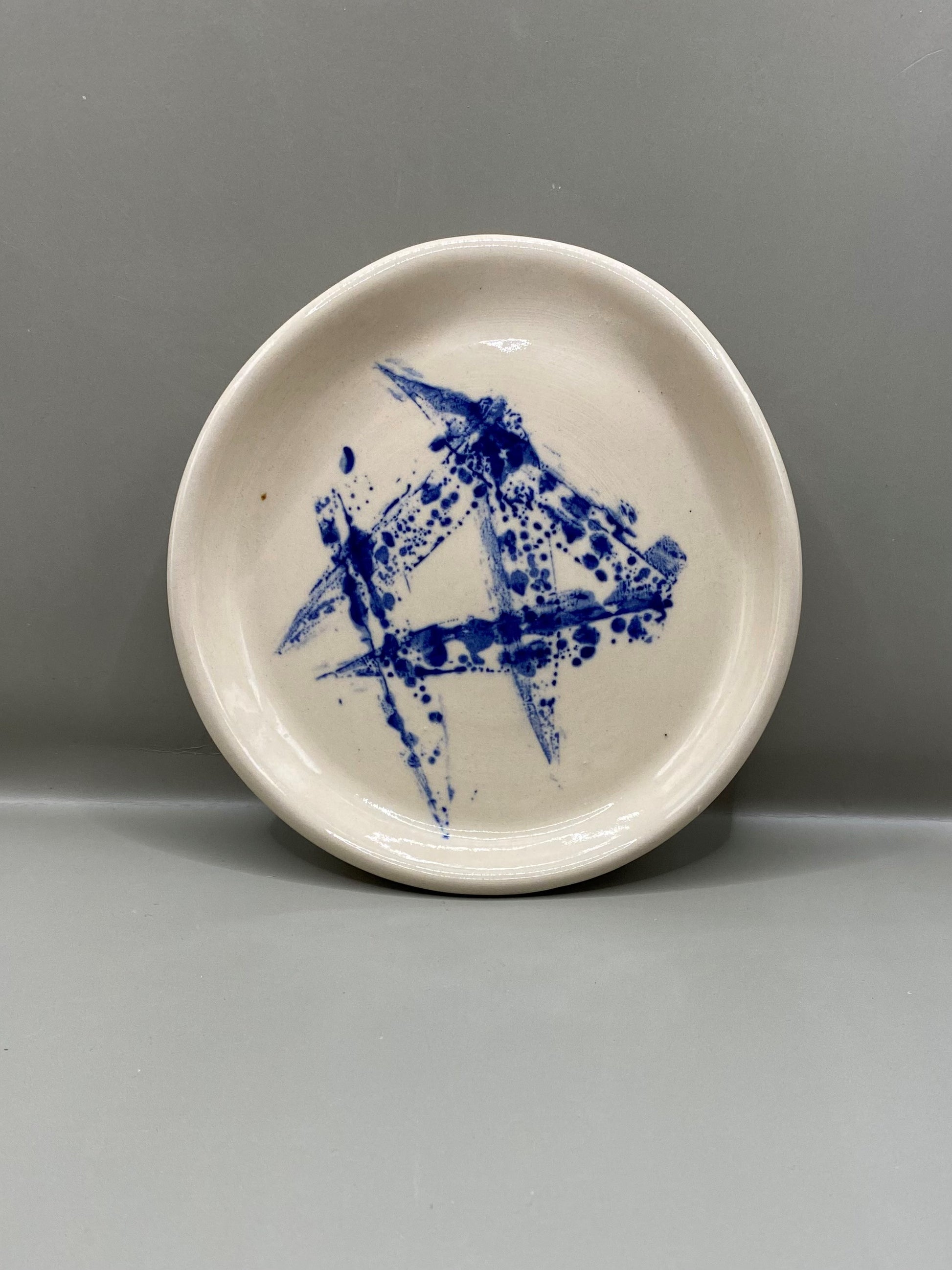 הצלוחית מיוצרת על האובניים מחימר לבן בעבודת יד מוקפדת ועליה מוטבעים בעדינות עלים ארוכים בגוון כחול עמוק שיוצרים מראה טבעי, רגוע ואלגנטי