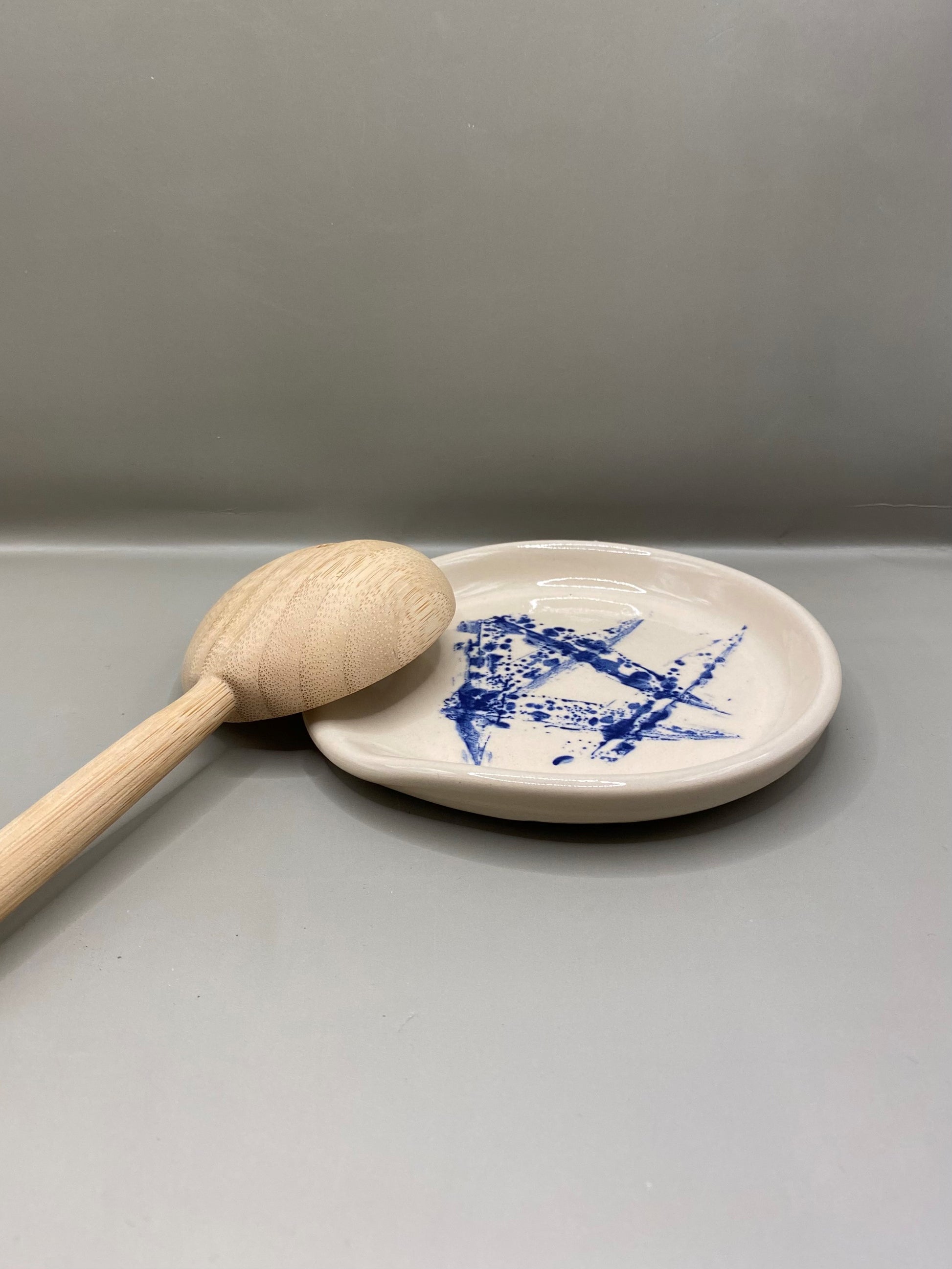 צלוחית יחודית להנחת כף בישול במטבח עשויה מקרמיקה בעיצוב מינימליסטי