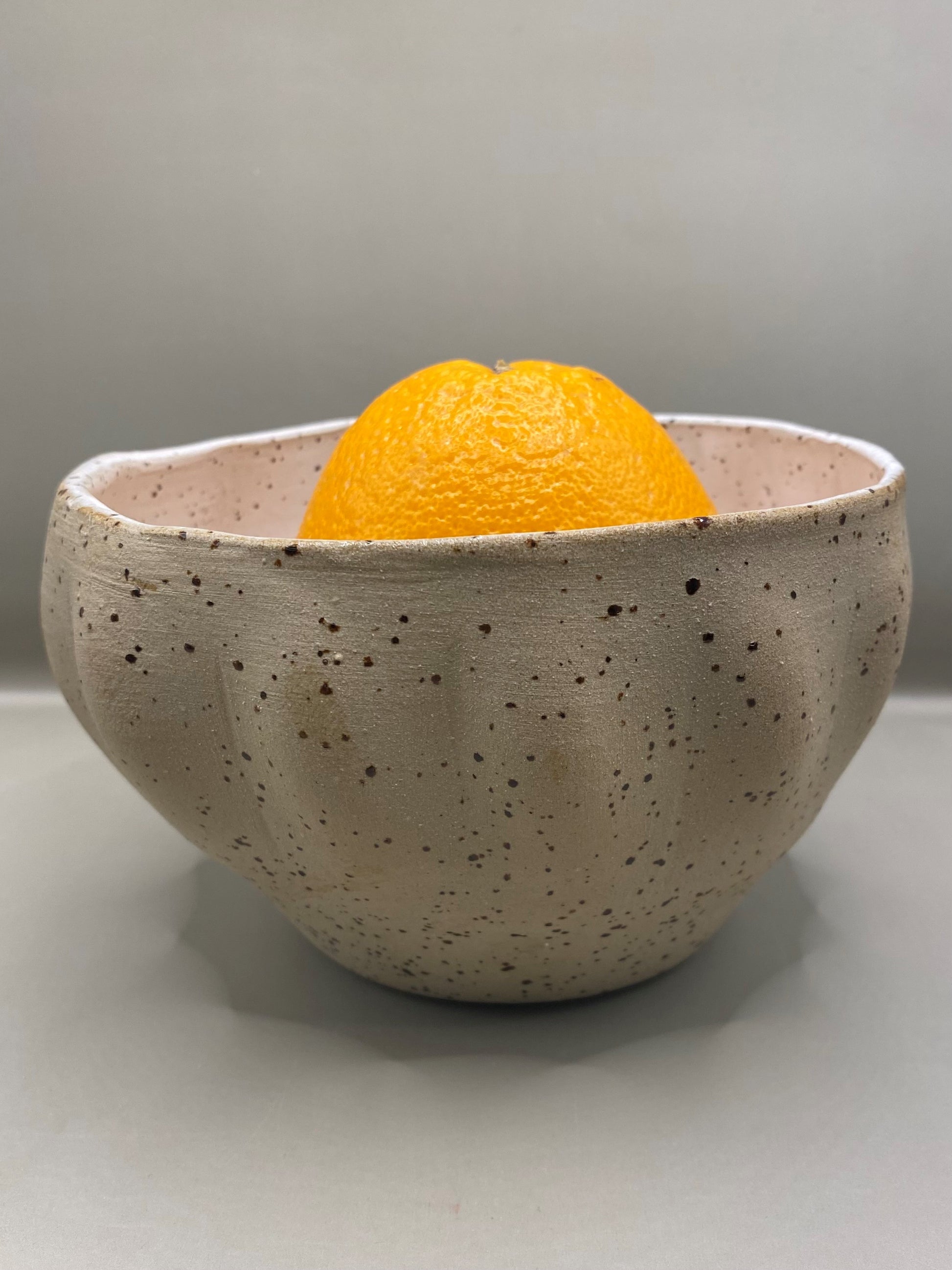 קערה יחודית עבודת יד, עשויה מחימר אוקר מנוקד בצורת דלעת. פנים הכלי מזוגג בגלזורה לבנה בטמפרטורה גבוה שמוסיפה אלגנטיות לכלי
