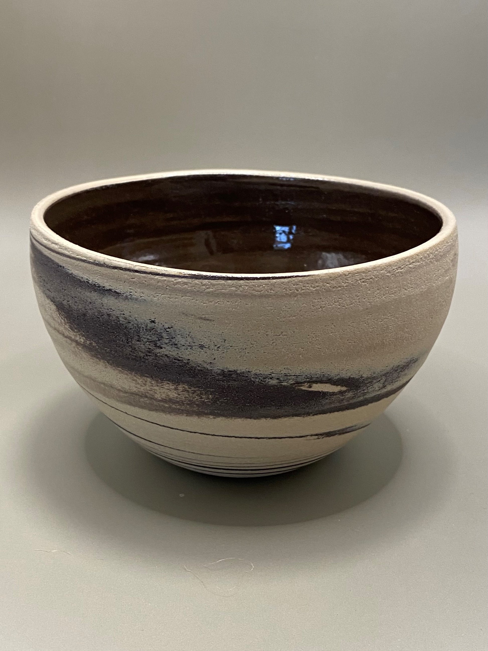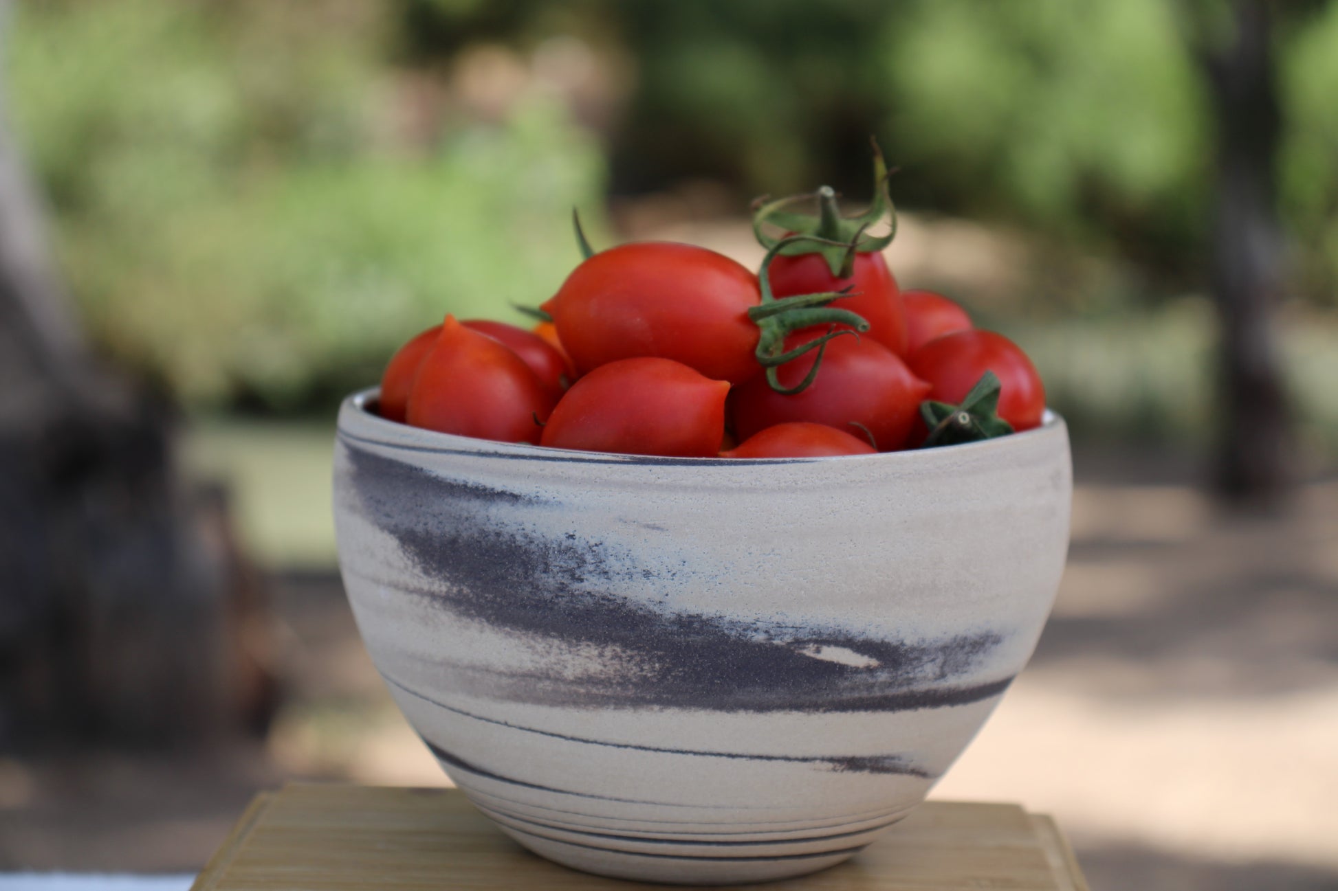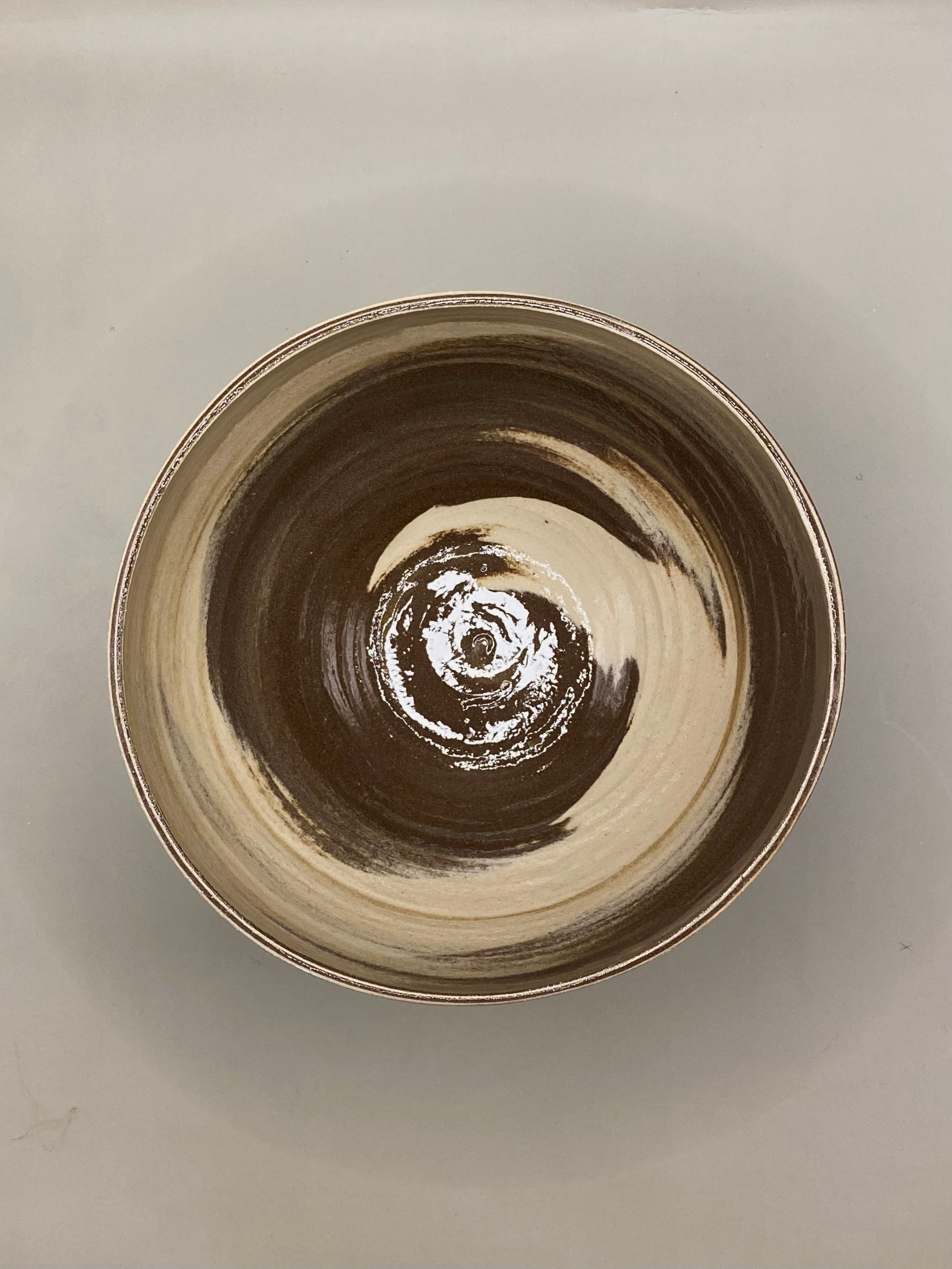 קערה יחודית עבודת יד, עשויה מחימר לבן שעורבב עם חימר חום כהה, ליצירת דוגמא טבעית וחד פעמית במרקם יחודי שאין שני לו