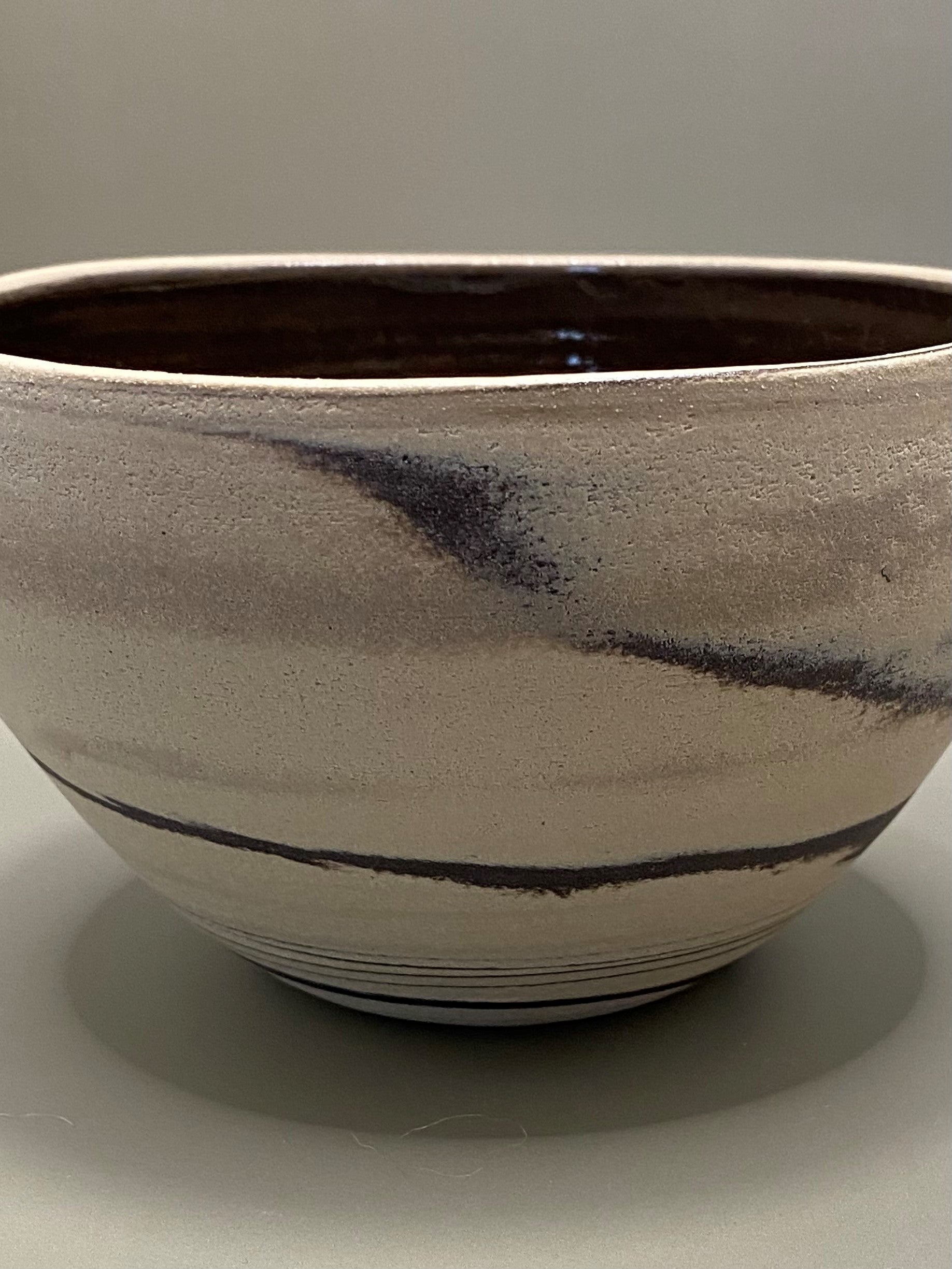 קערת קרמיקה - חימר לבן עם עורקים כהים